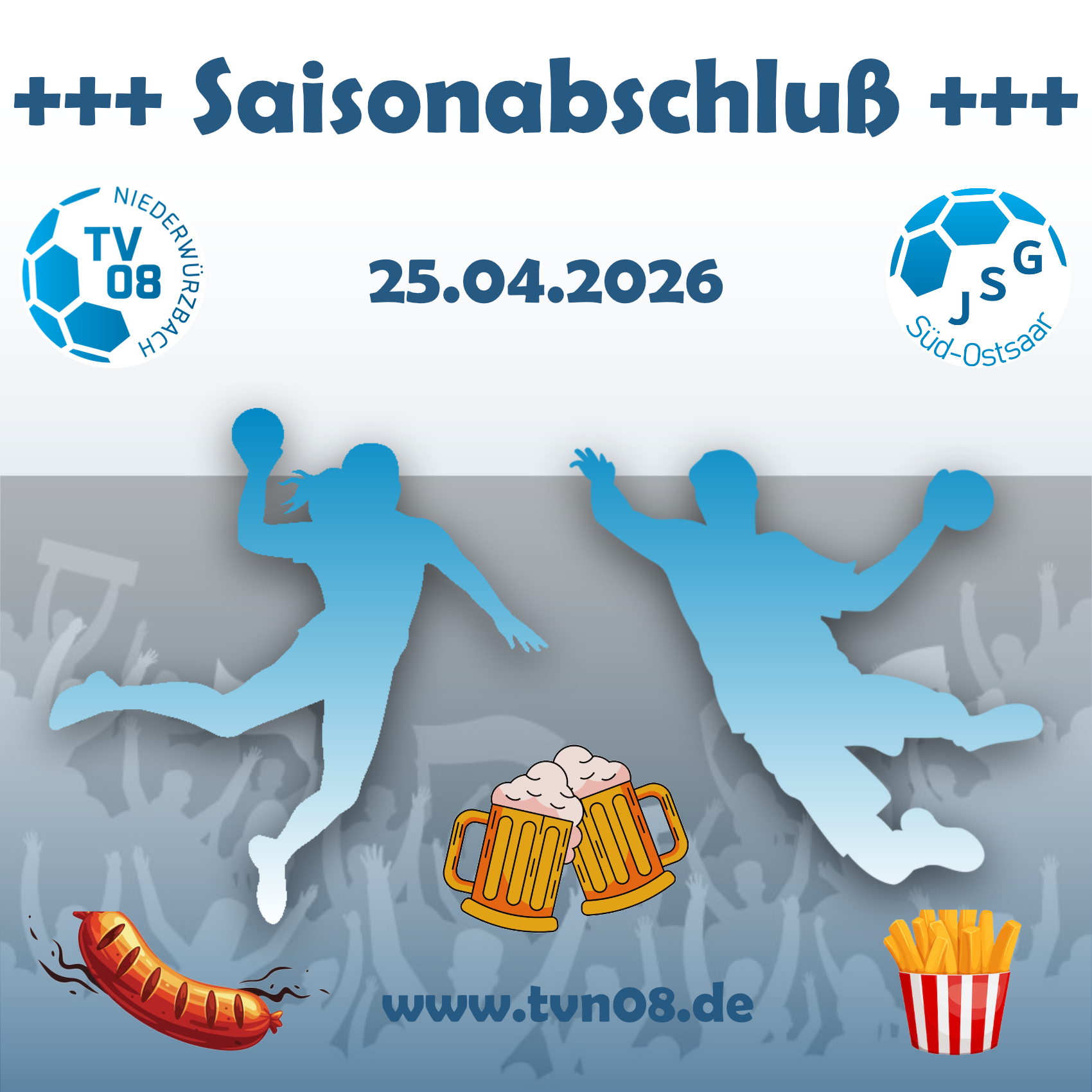Alle Freunde des TV Niederwürzbach und der JSG Süd-Ostsaar sind herzlich eingeladen, unsere 1. Herren-Mannschaft beim letzten Spiel der Saison gegen den TuS Brotforf anzufeuern.
